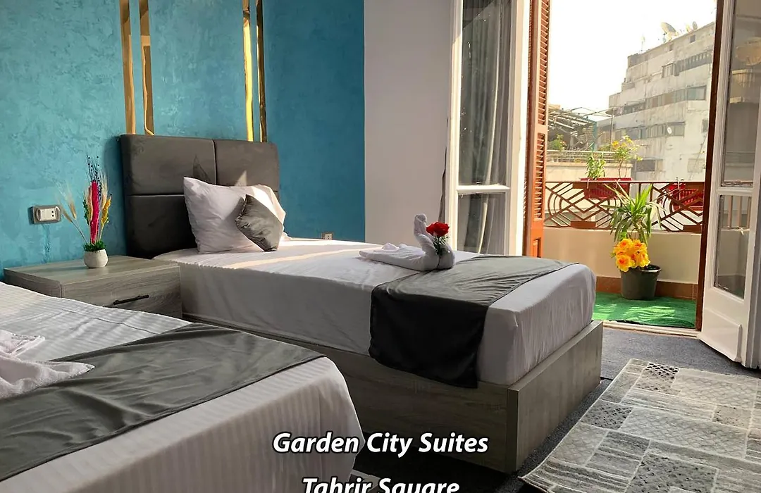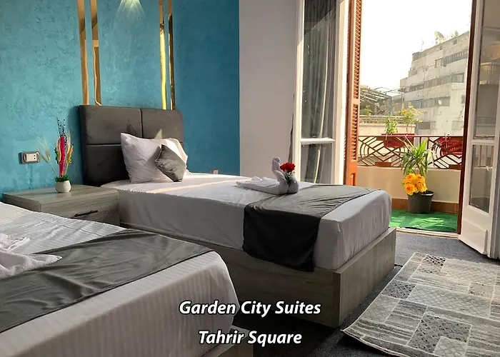 Es el hotel a solo 10 minutos a pie del centro de la ciudad. Los lugares históricos de la zona incluyen el Mausoleo de Saad Zaghloul, situado a 600 metros. El Garden City Hotel & Suites Tahrir Square El Cairo también está a poco más de 25 minutos a pie de la Ciudadela del Cairo. El hotel está a una distancia de 450 metros de la estación de metro Saad Zaghloul, a un corto paseo del Museo de Antigüedades Egipcias. Se tarda solo 18 minutos en coche para llegar al Aeropuerto El internacional del Cairo. Que está a 25 km.